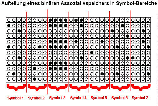 Obige Überlegungen wurden unabhängig von einem bestimmten Modell von Assoziativspeicher angestellt. Lediglich wurde vorausgesetzt, daß die Muster, welche die einzelnen Symbole codieren, zufallscodiert sind. Dies scheint die am wenigsten aufwendige Methode zu sein, um zu gewährleisten, daß je zwei Muster den größtmöglichen Hamming-Abstand besitzen.